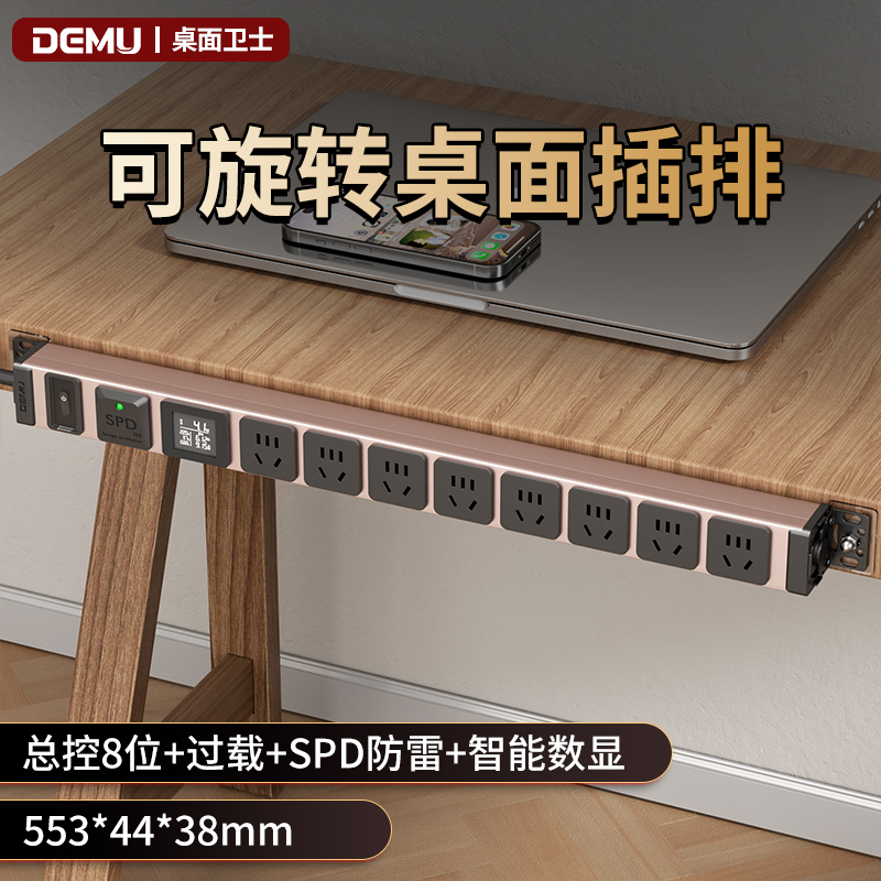 金粉板体 1U非标尺寸:250V 10A输入,8位10A新国标+微光过载总开关+防雷+全显计量(白色),2米1.5平线+10A国标三脚插头