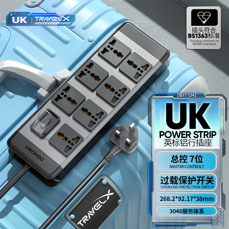 银翼板体 2U非标尺寸:左侧进线:250V 13A输入,7位10A多用孔(带保护门)+微光过载总开关+英标插头