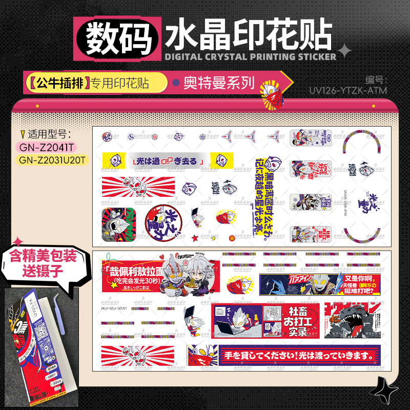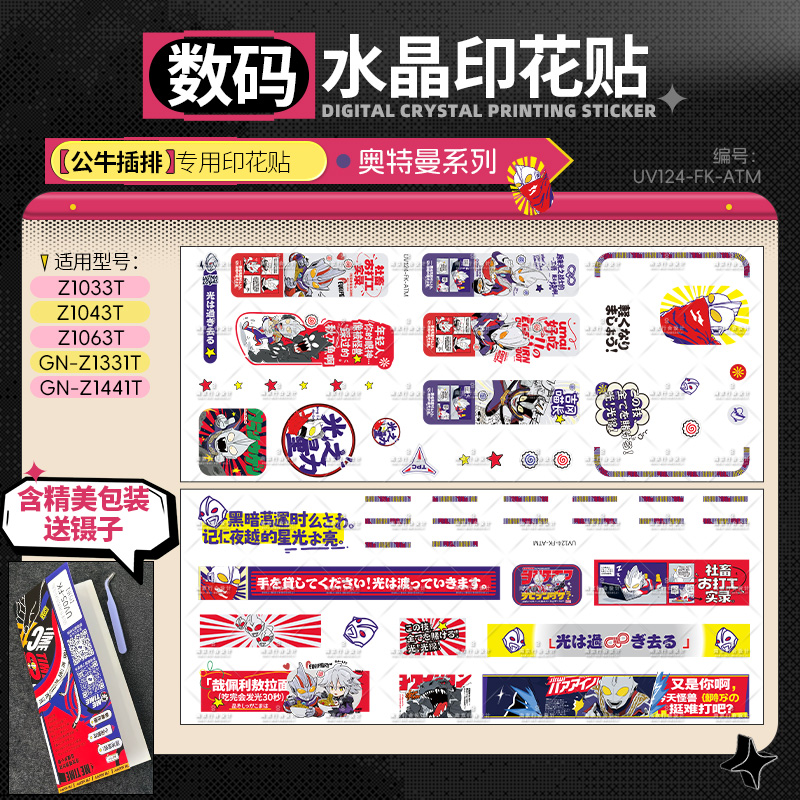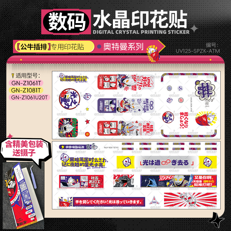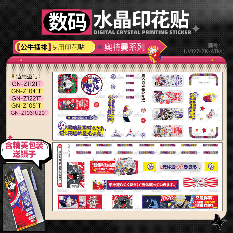 以奥特曼的英雄光线与宇宙战斗感为视觉核心,加入星空、能量纹路与经典胸灯符号。色调明亮大胆,展现热血守护的力量。贴上它,插排像拥有了超人般的能量场,点亮童年记忆的勇气与光。