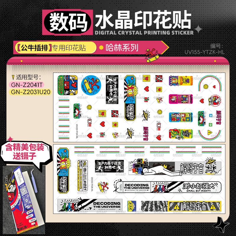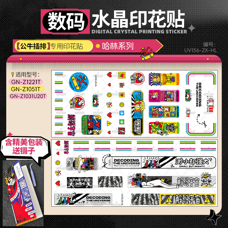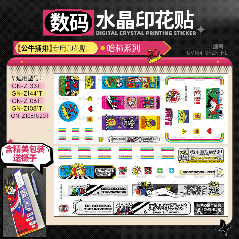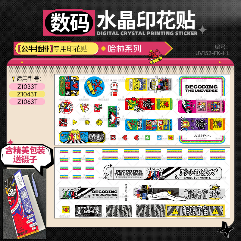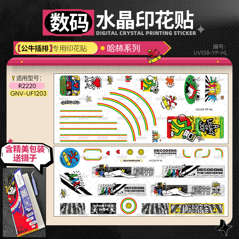 致敬基思·哈林标志性的跳跃线条与舞动人物,以明亮纯色与节奏感构图呈现“艺术即生活”的理念。作品充满能量、欢乐与街头艺术特有的自由气息。贴上它,插排也能成为富有生命力的小型艺术舞台。
