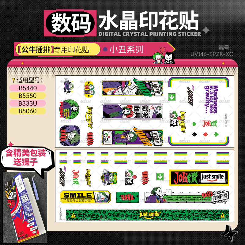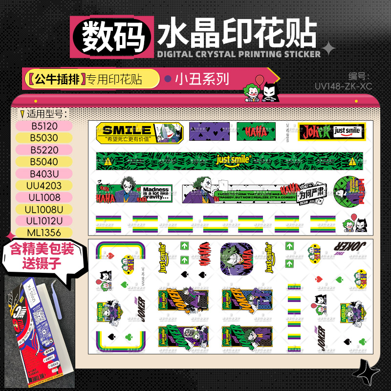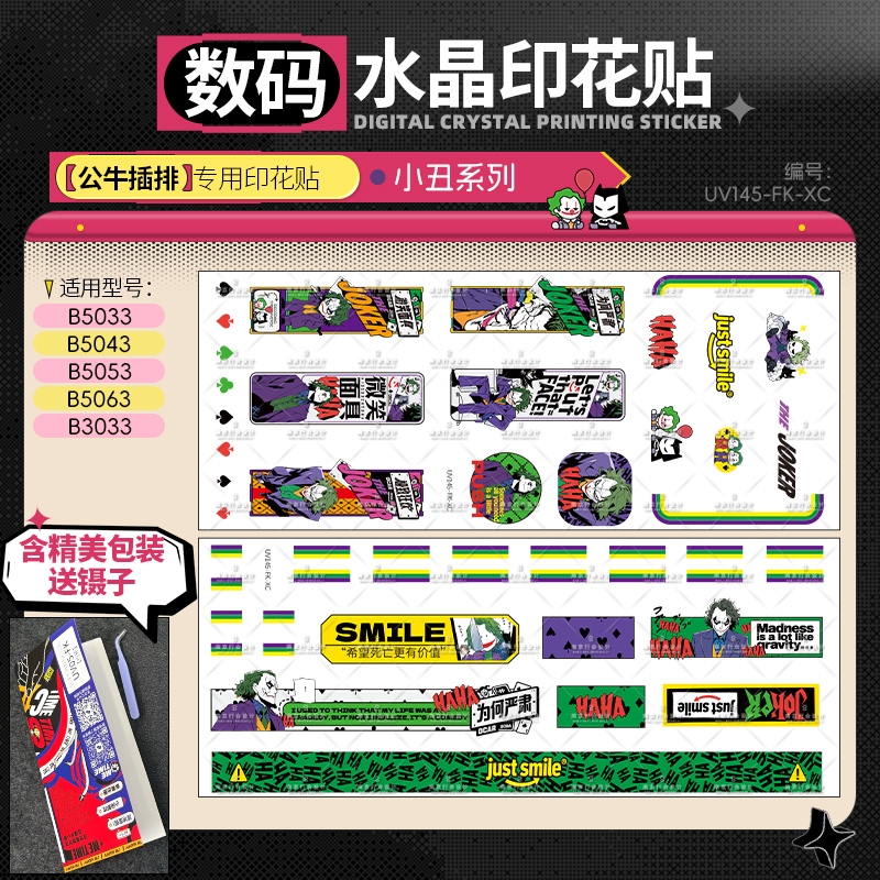 以漫画小丑的混乱美学为灵感,采用强反差色调、撕裂笔触与疯狂笑脸符号,呈现反派魅力与戏剧张力。整个系列充满暗黑潮流感,让插排瞬间变成个性宣言:规则之外,亦是一种风格。