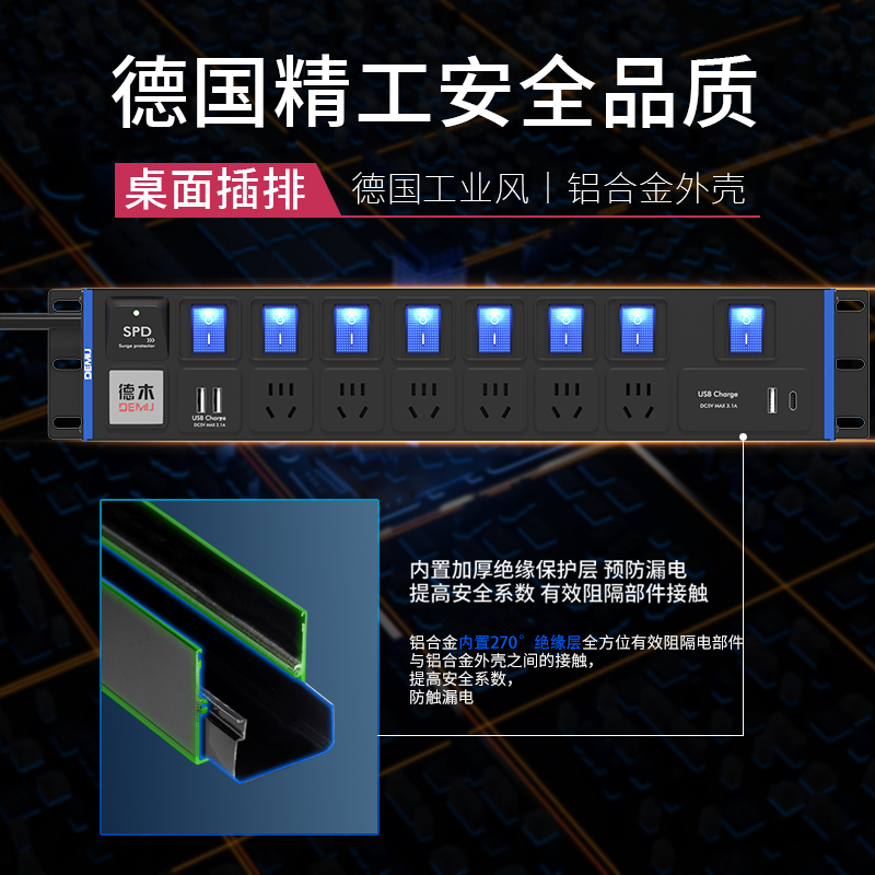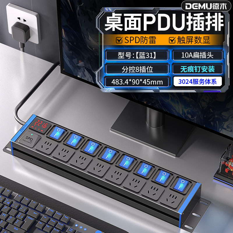 10A输入 8位新国标+8位分控开关+防雷+计量 1.5平2米线+10A国标插头