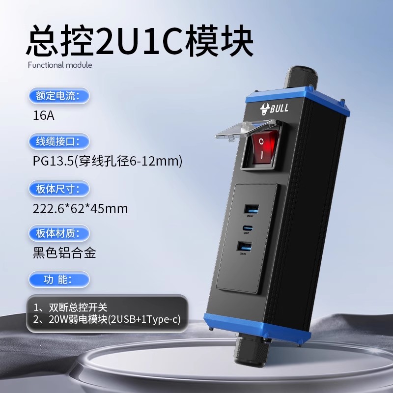 公牛1.5U-16A双断开关+1位Ut20(2U1C)【连接器】