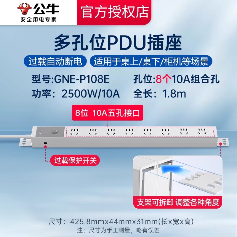 公牛PDU插排-ES系列-白色GNE-P108E(1.8米)