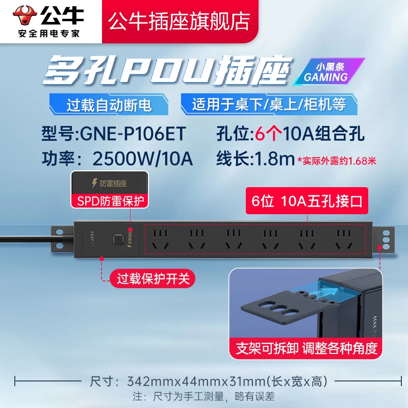 公牛PDU插排-ES系列-黑GNE-P106ET (1.8米)